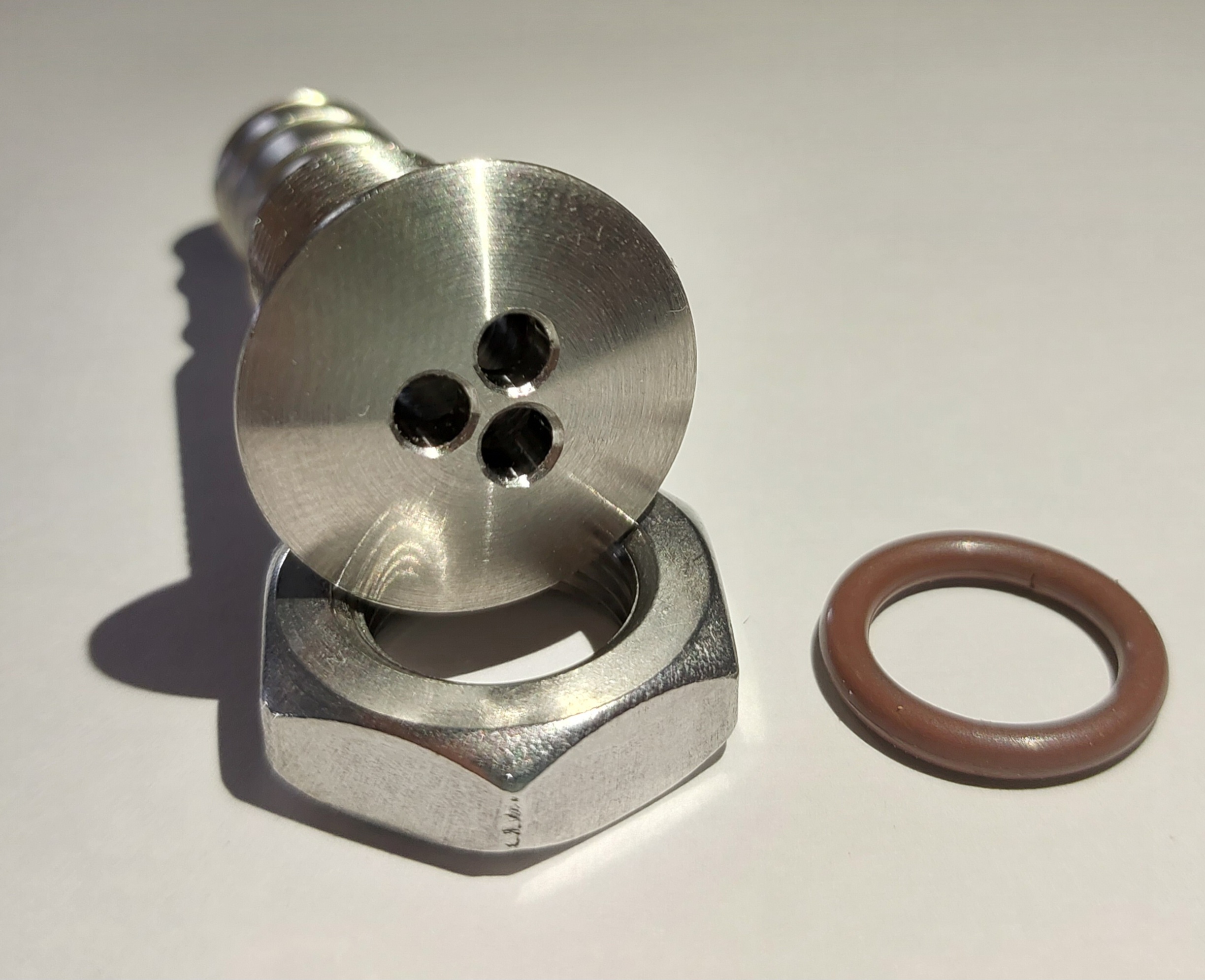 W komplecie: element montażowy z gwintem, uszczelka, element wewnętrzny z otworami.