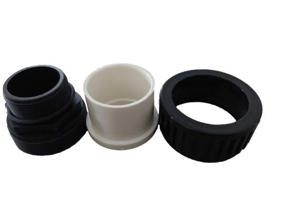 W zestawie dwuzłączki przystosowane do wklejenia węża 1,5″ (48 mm.)
