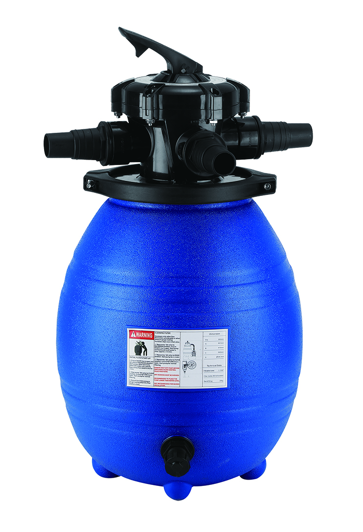 Filtr piaskowy z pompą do oczyszczania wody z przyłączem górnym.