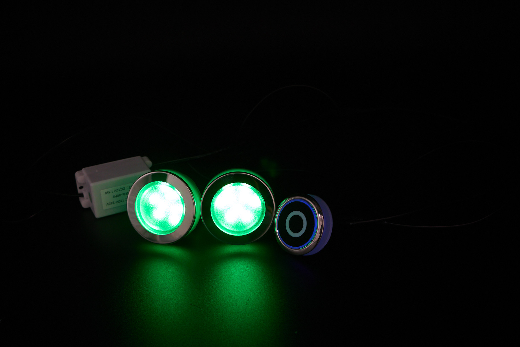 W komplecie: zasilacz, okablowanie, przycisk dotykowy podświetlany, 2 sztuki soczewki z diodami.
