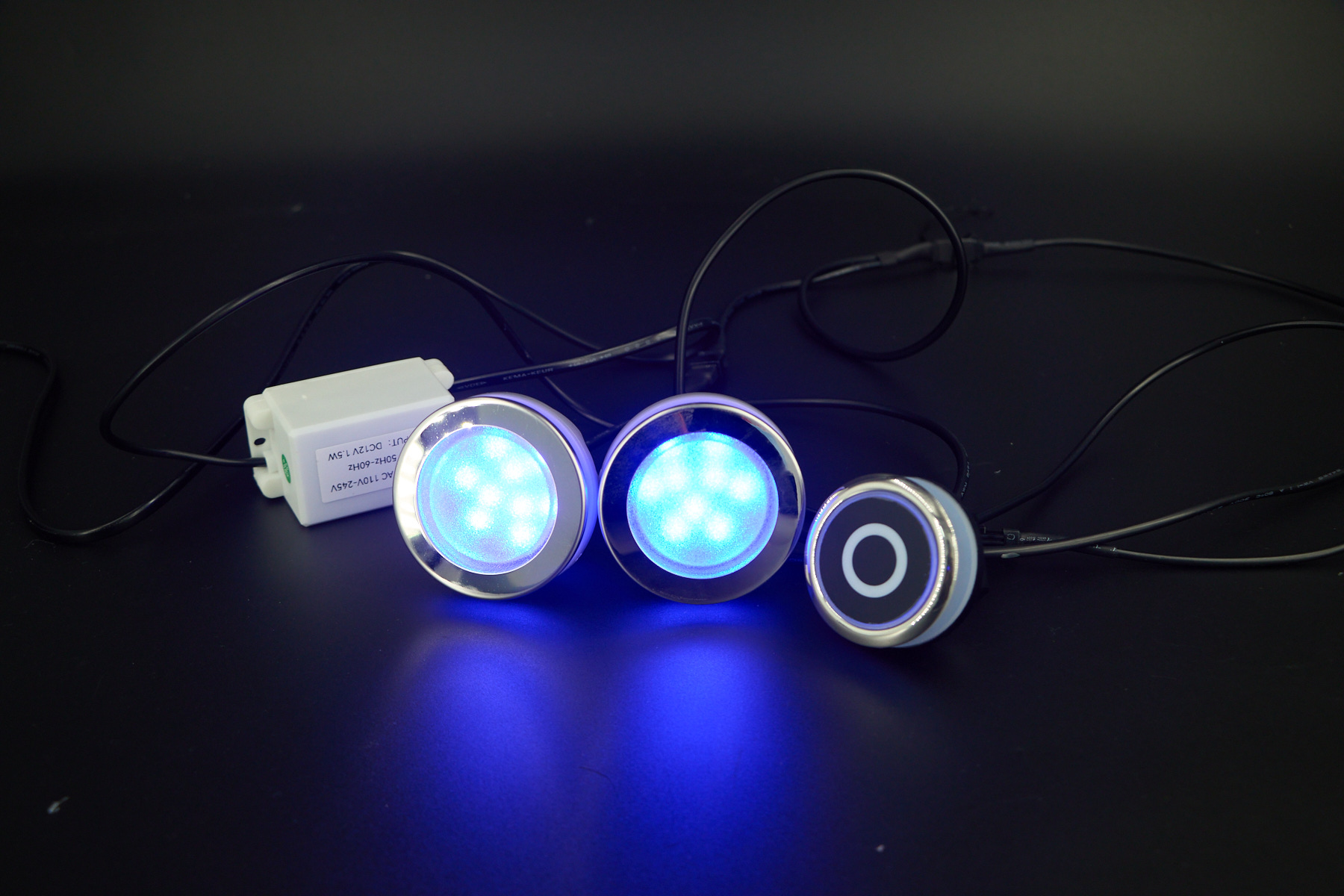Kompletny zestaw oświetleniowy LED RGB 2 x 1,5W z przyciskiem dotykowym BCL-02.2