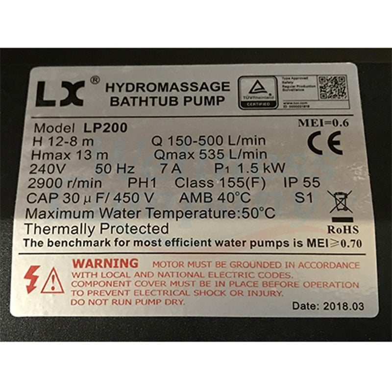 Pompa hydromasażu LX 1,50kW 2,0KM NA PRZYCISK 1-faz. LP200 2″ 60 mm.