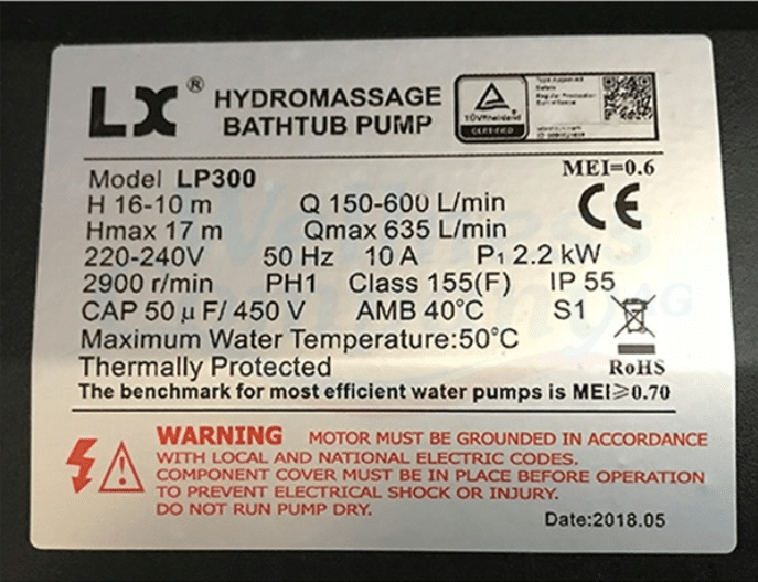 Pompa hydromasażu LX 2,20kW 3,0KM NA PRZYCISK 1-faz. LP300 2″ 60 mm.