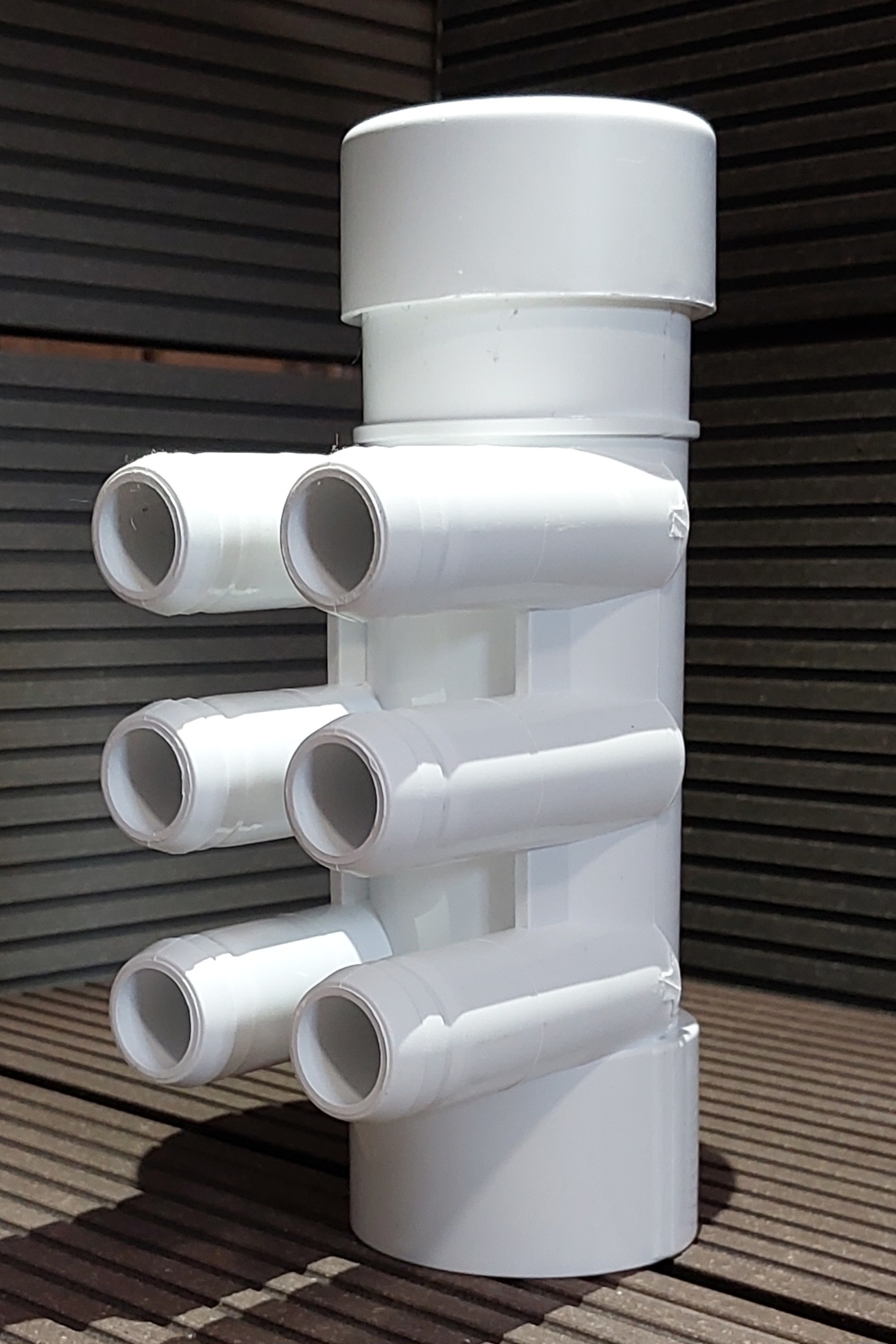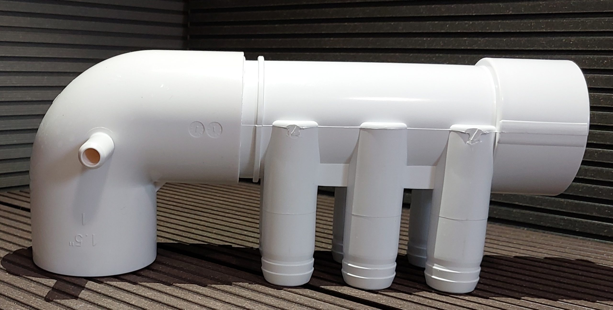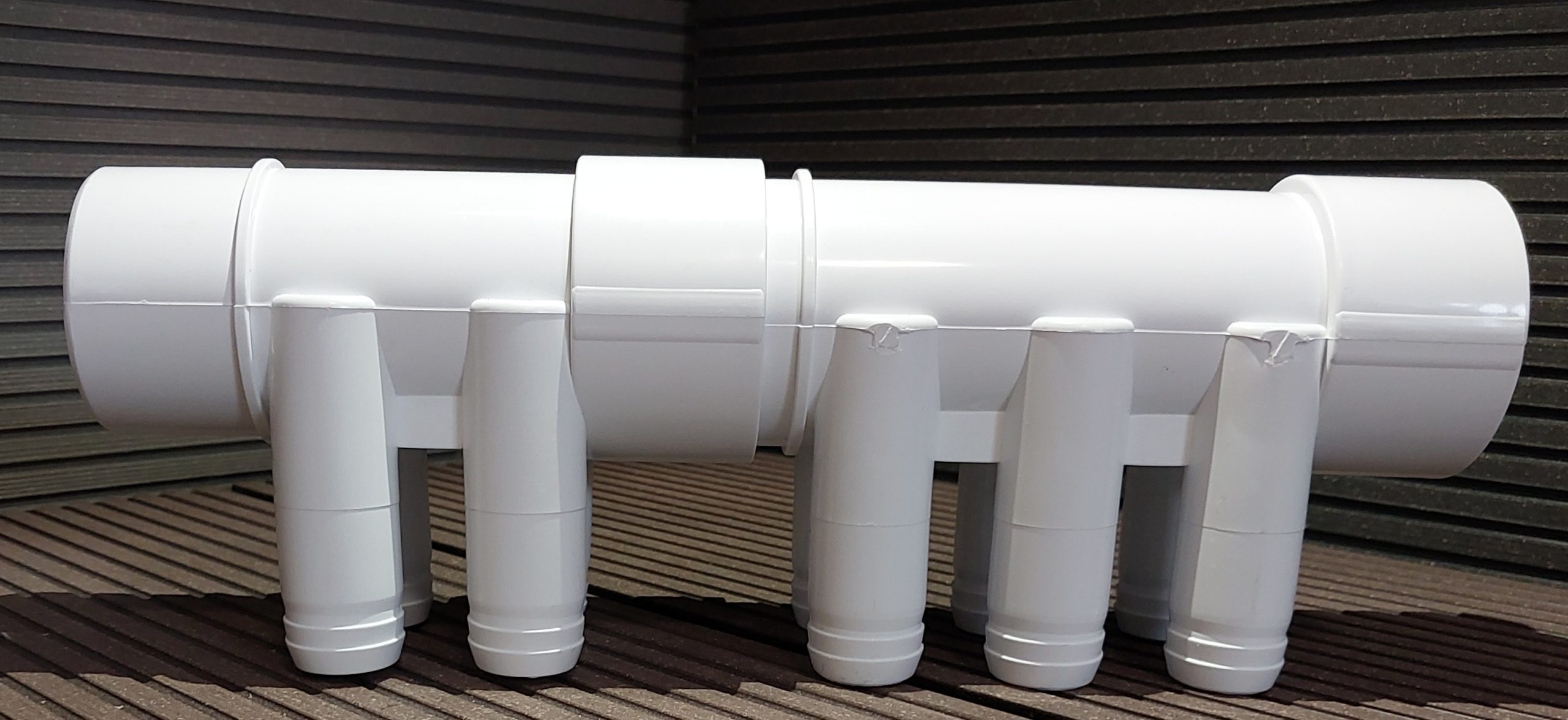 Przyłącza do dysz: 6 x D22mm. (na węża D25 lub 3/4″) – węże na rozdzielacz można zamontować na opaskach zaciskowych lub na kleju.