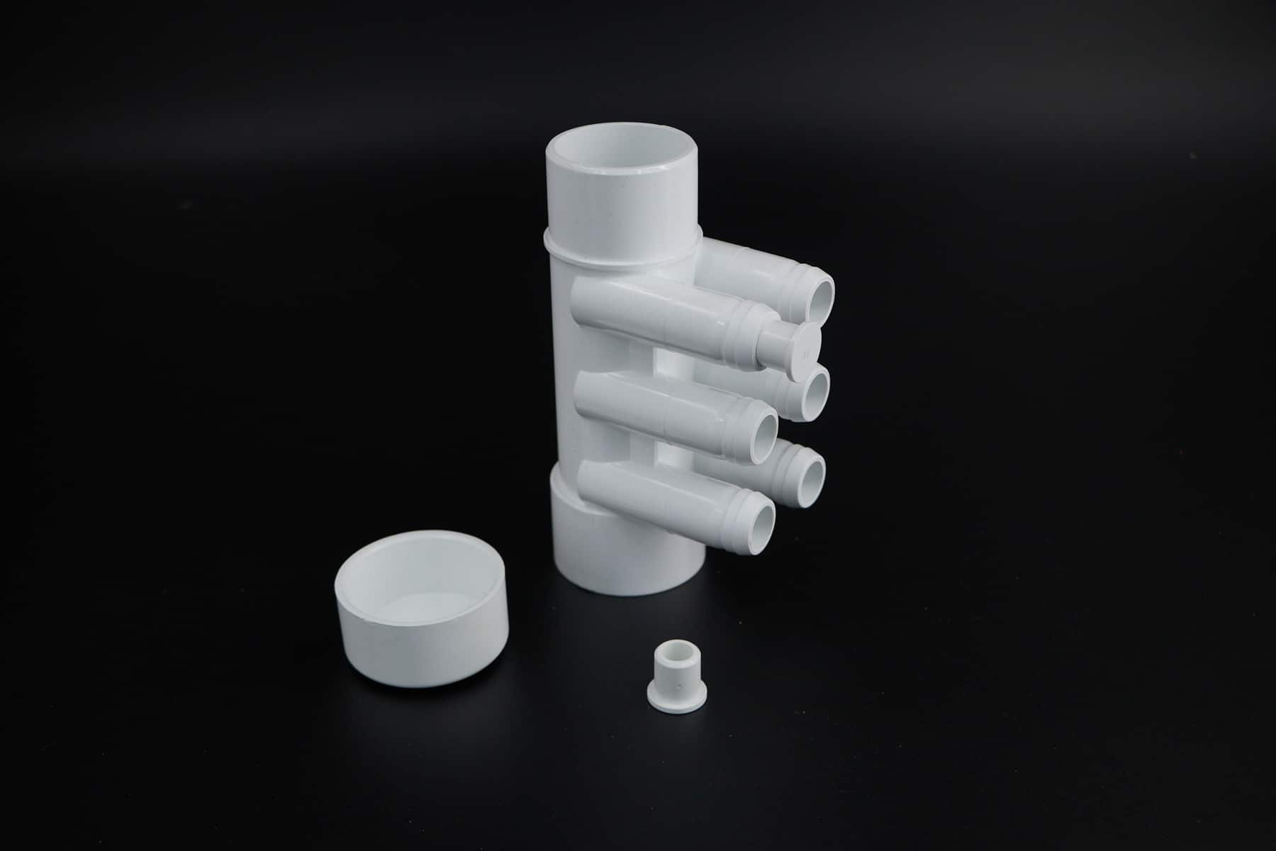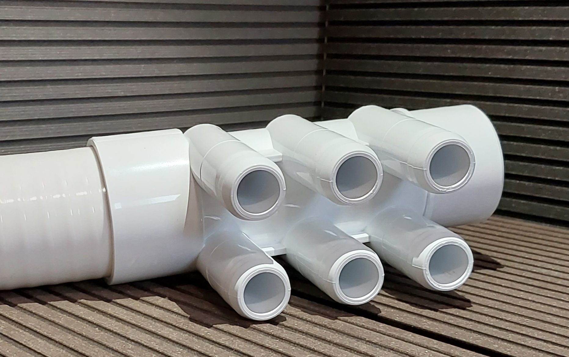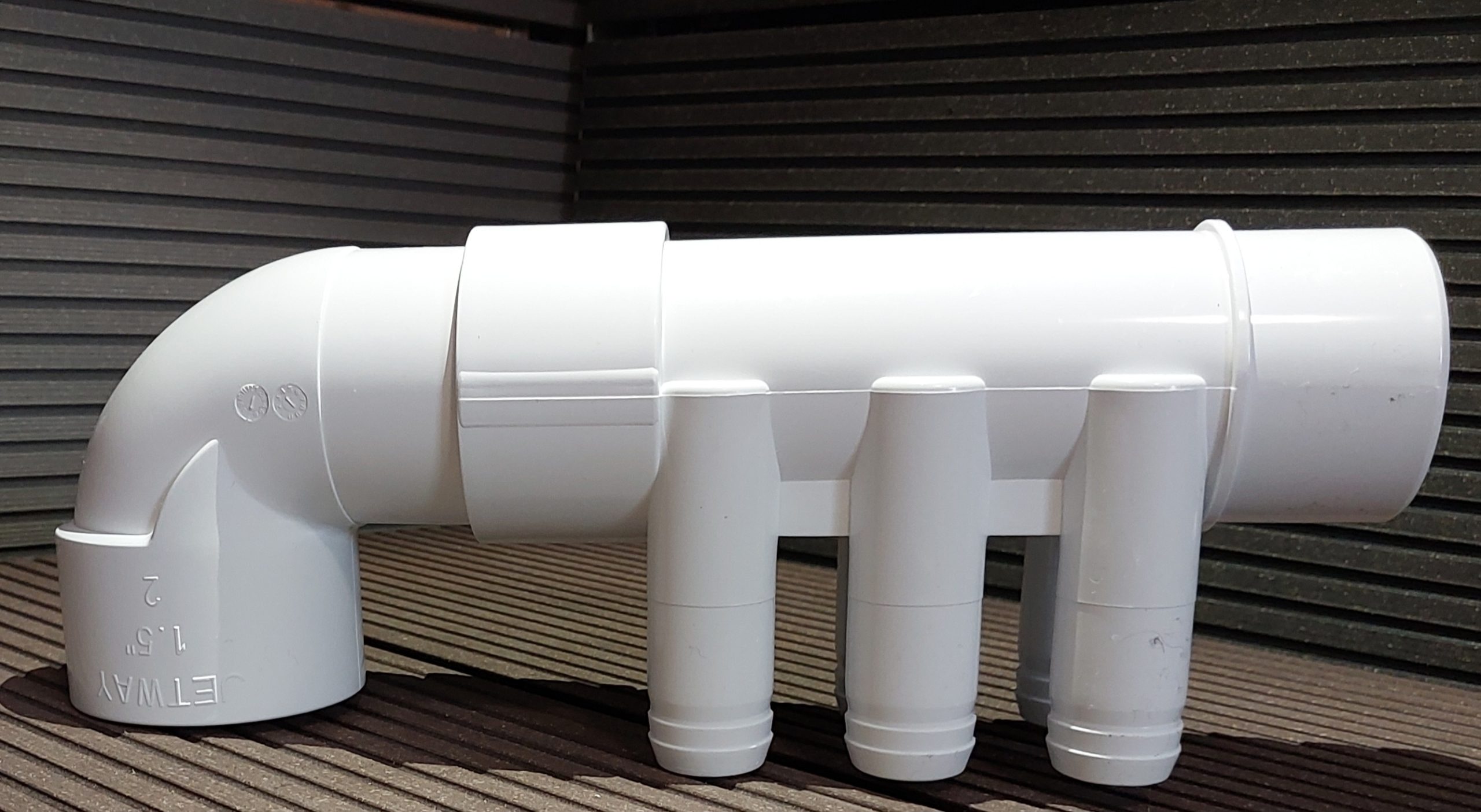 Przyłącza do dysz: 6 x D22mm. (na węża D25 lub 3/4″) – węże na rozdzielacz można zamontować na opaskach zaciskowych lub na kleju.