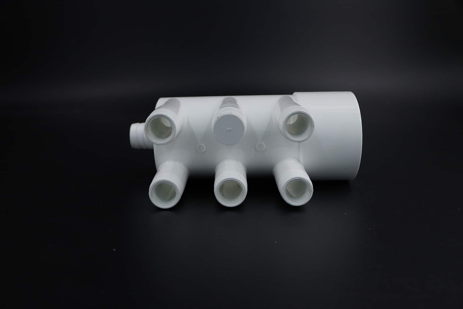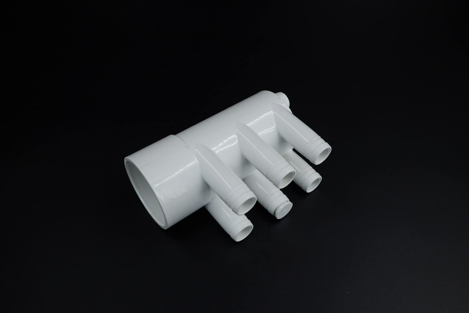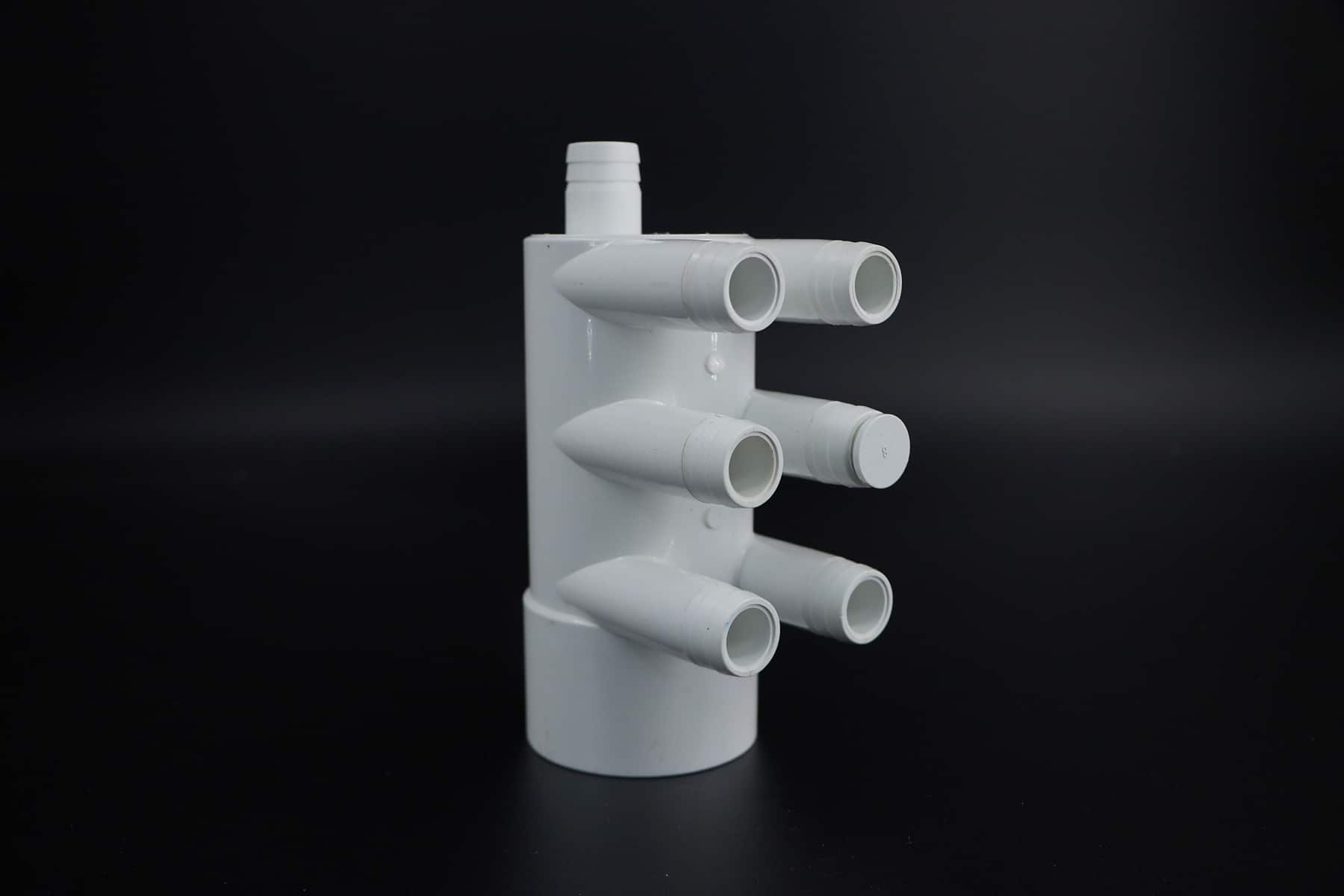 Przyłącza do dysz: 7 x D22mm. (na węża D25 lub 3/4″) – węże na rozdzielacz można zamontować na opaskach zaciskowych lub na kleju.