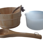 Wiadro o pojemności 5 litrów z chochlą – wykonane z drewna sosnowego, posiada plastikowy wkład